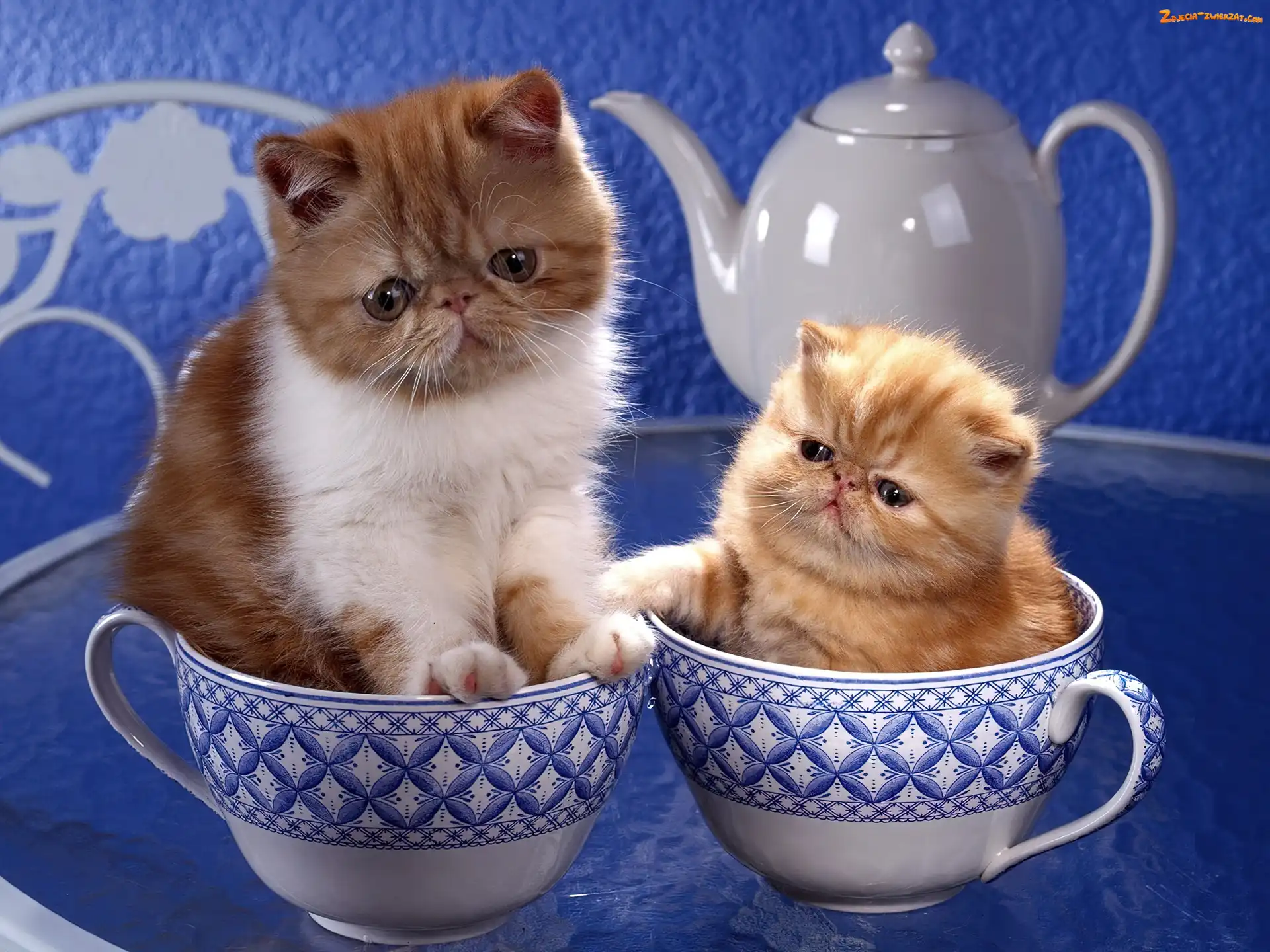 Zdjęcie: Kotki, Dzbanek, Dwa, Filiżanki