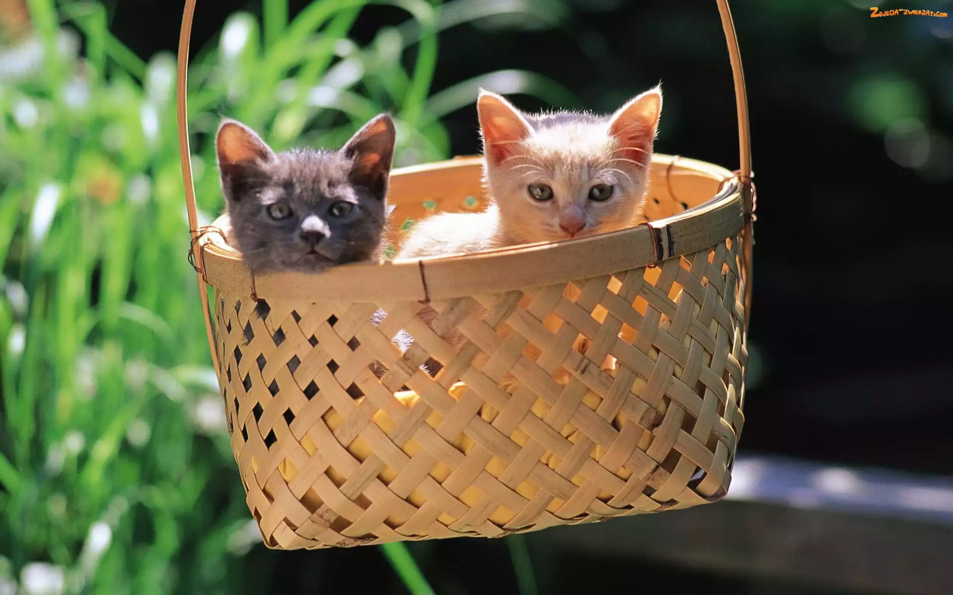 Zdjęcie: Kotki, Koszyku, Dwa, W