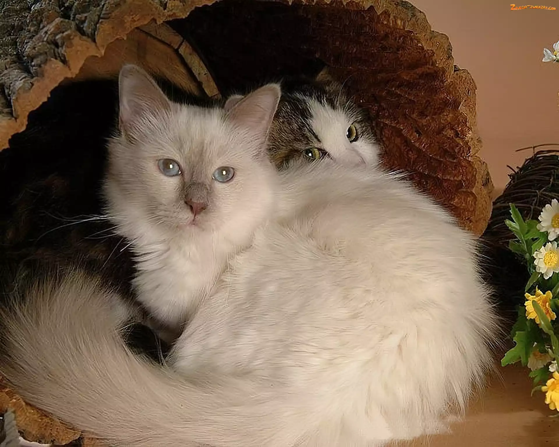 Zdjęcie: Dwa, Koty, Angory, Tureckie