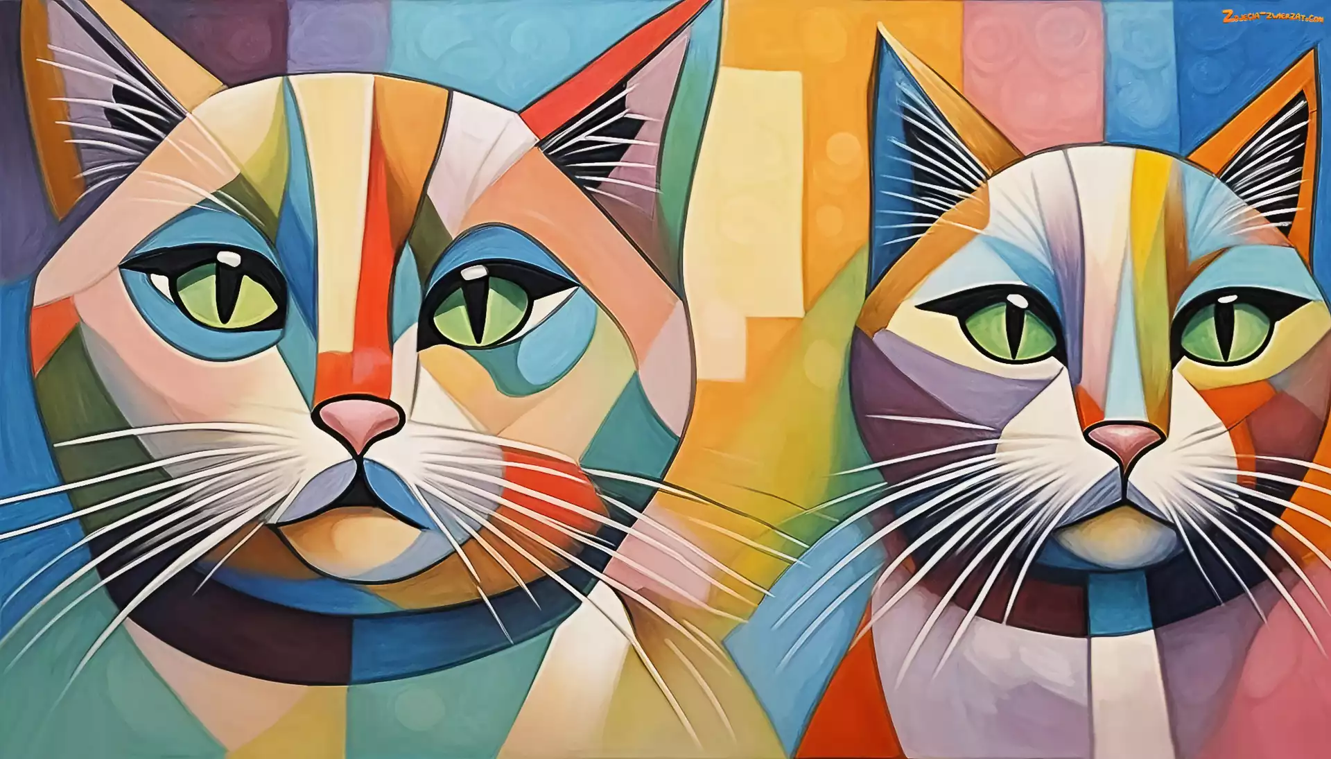 Zdjęcie: Dwa, Kolorowe, Grafika, Koty