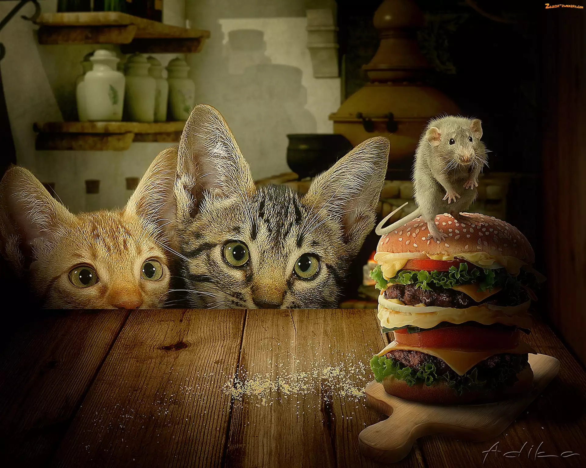 Zdjęcie: Koty, Hamburgery, Dwa, Szczurek
