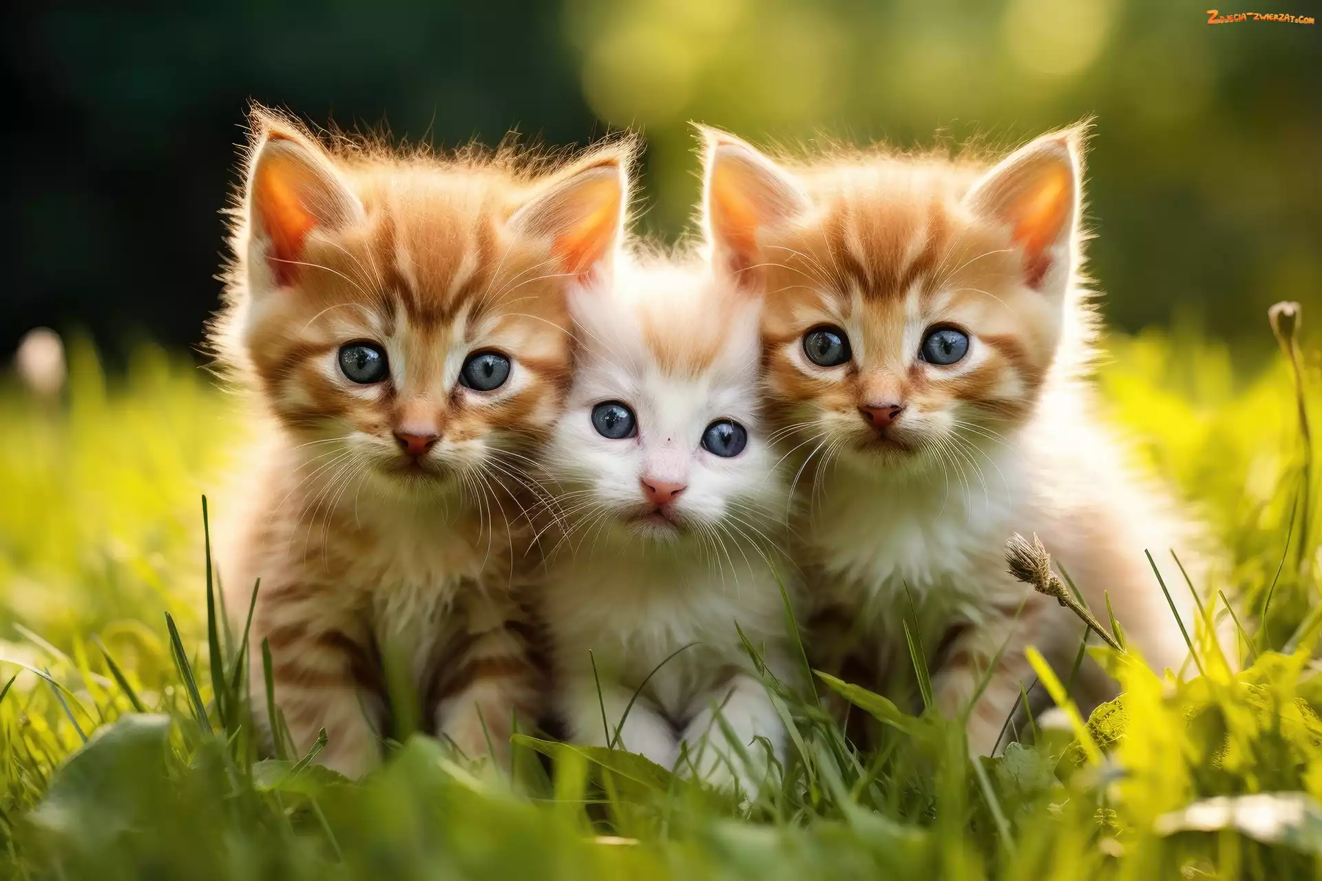 Zdjęcie: Trawa, Koty, Grafika, Trzy, Małe