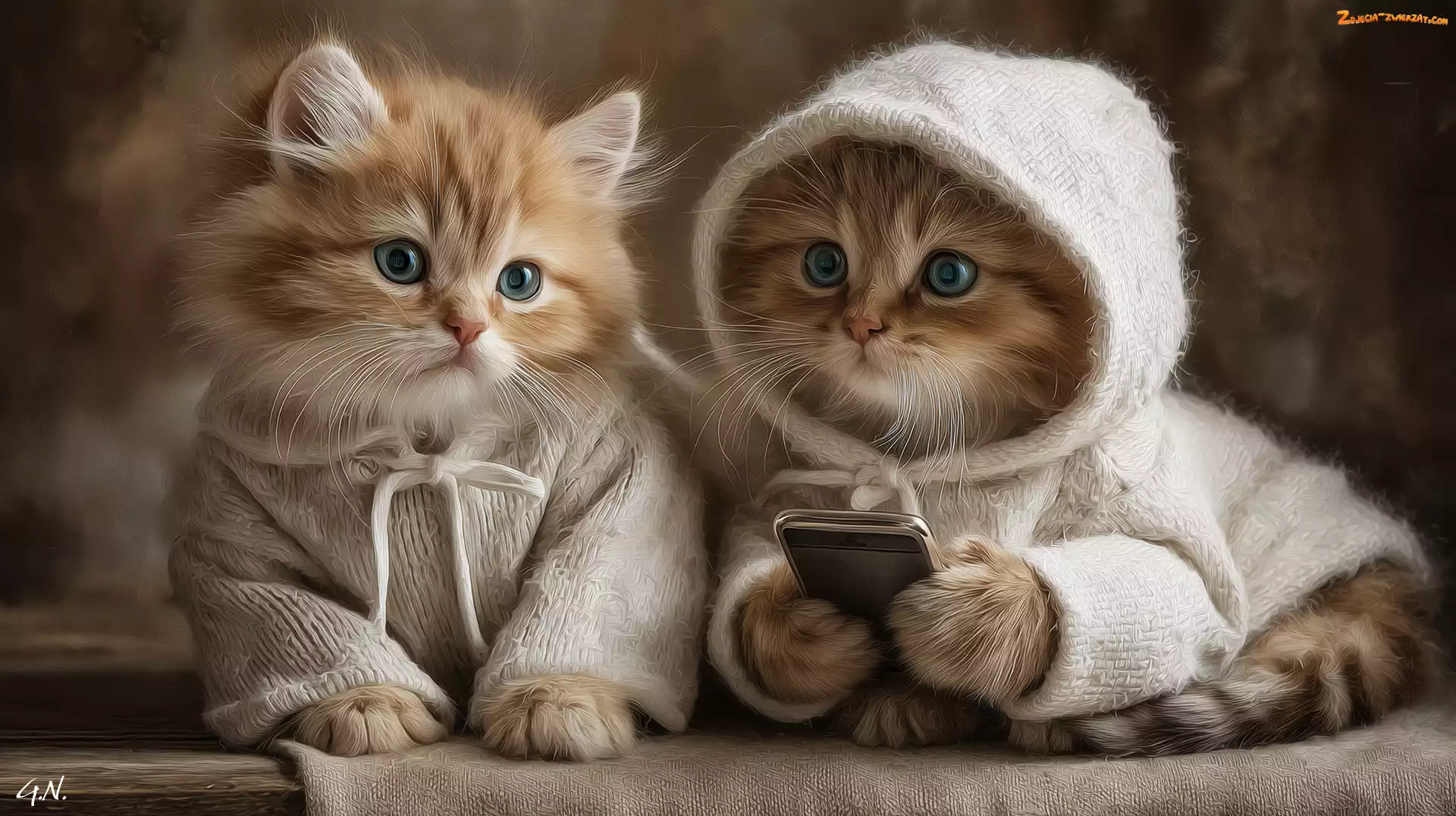 Zdjęcie: Dwa, Koty, Grafika AI, Ubranka