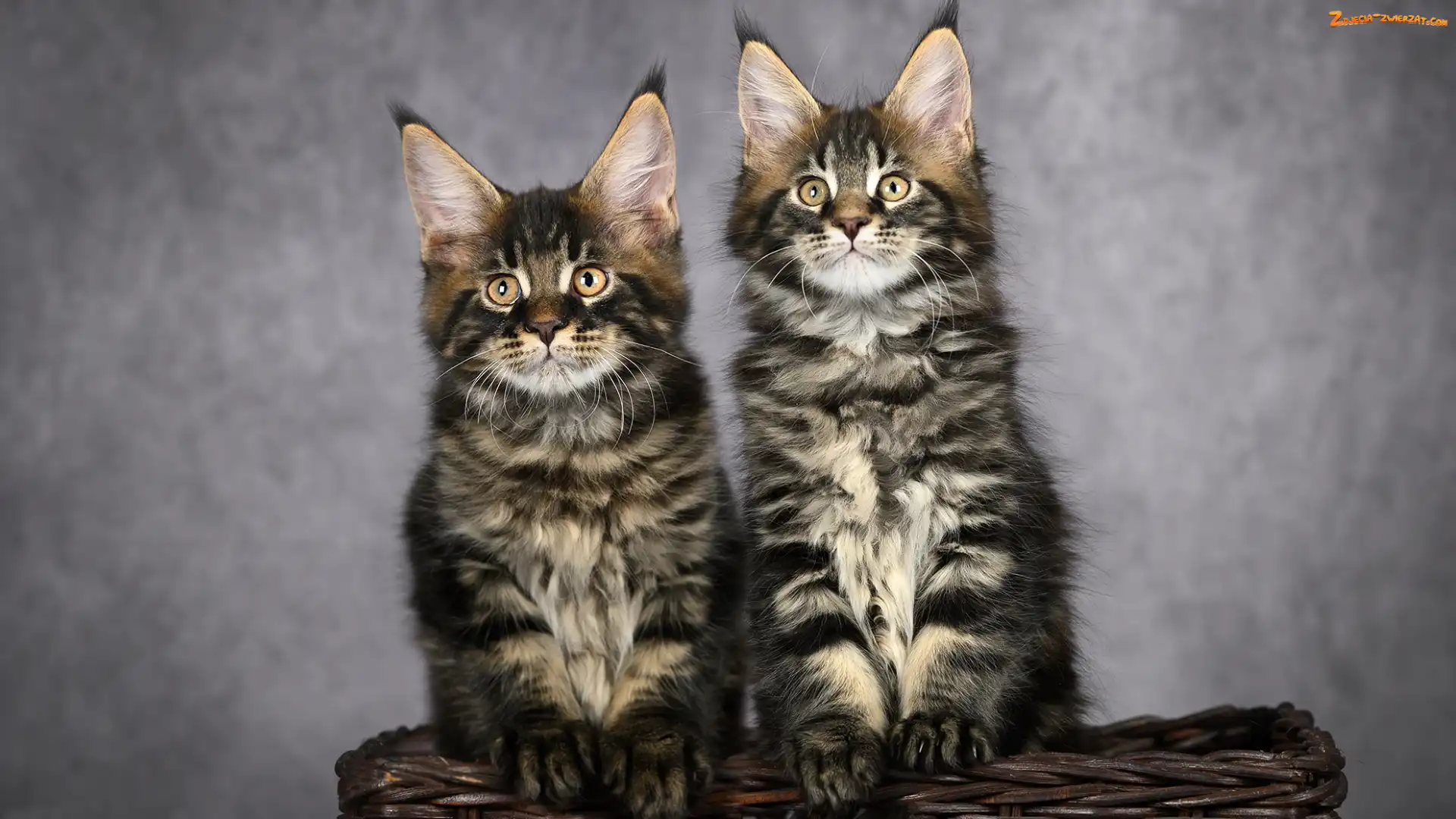 Zdjęcie: Dwa, Koty, Koszyk, Maine coon