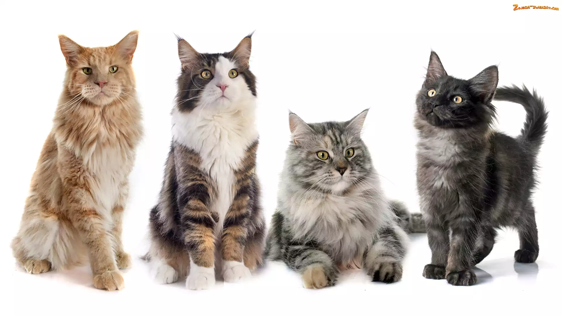 Zdjęcie: Koty, Białe tło, Cztery, Maine coon