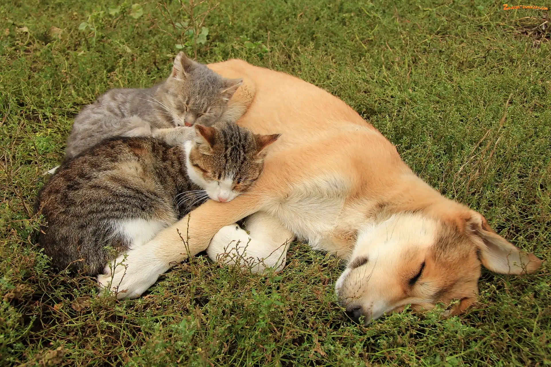 Zdjęcie: Trawa, Koty, Pies