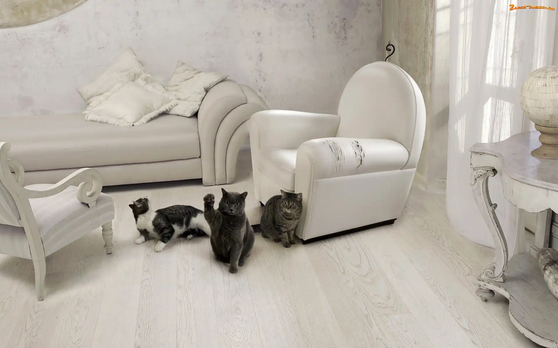 Zdjęcie: Koty, Meble, Trzy, Podrapane