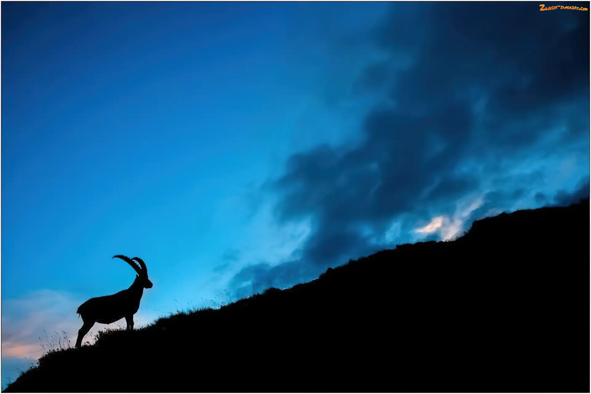 Koziorożec, Chmury, Zachód Słońca, Góra