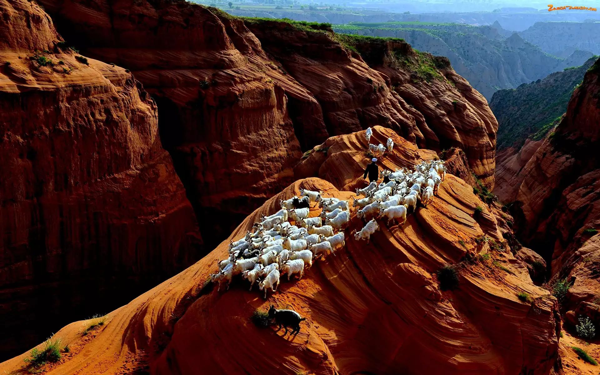 Zdjęcie: Kozy, Stado, Formacje skalne, Skały, Góry