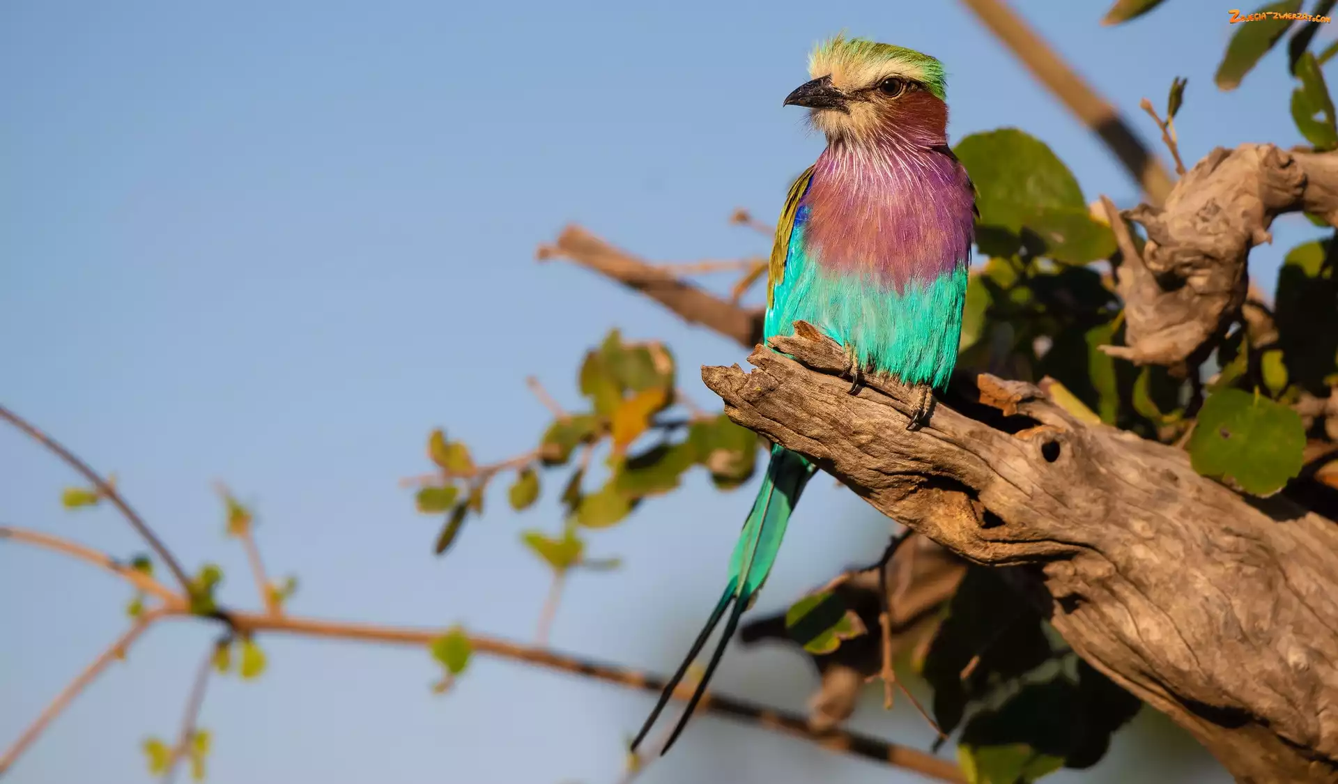 Ptak, Kraska liliowopierśna, Liście, Konar