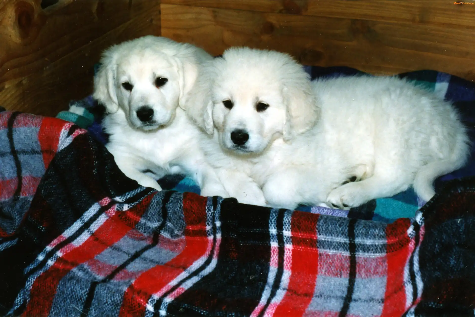Zdjęcie: kratka, koc, szczeniaki, białe, Słowackie czuwacze
