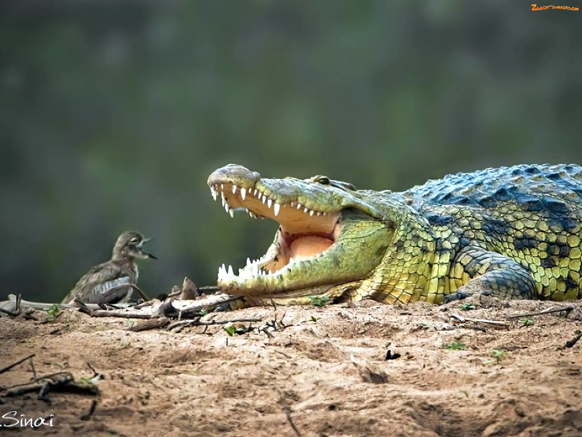 Zdjęcie: Piasek, Krokodyl, Ptak