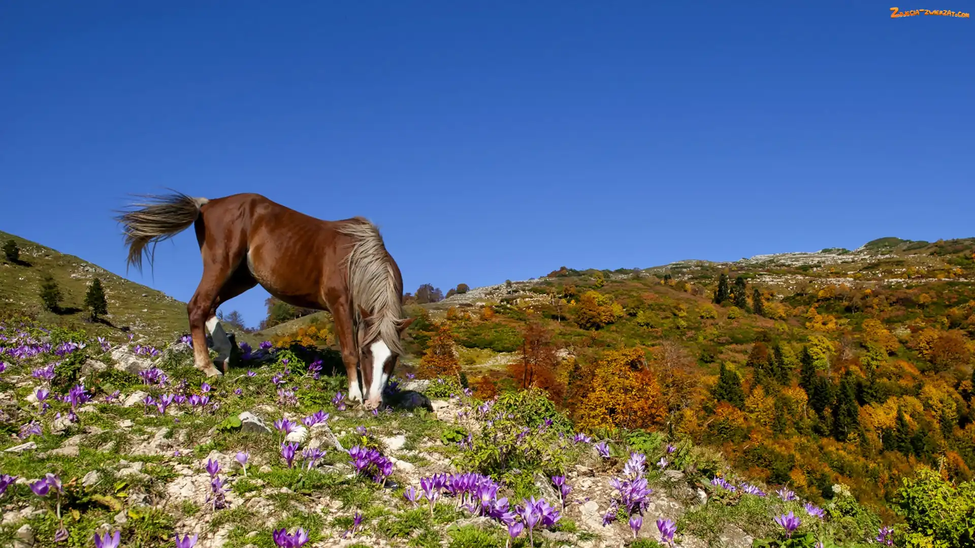 Zdjęcie: Krokusy, Jesienne, Wzgórza, Koń, Drzewa