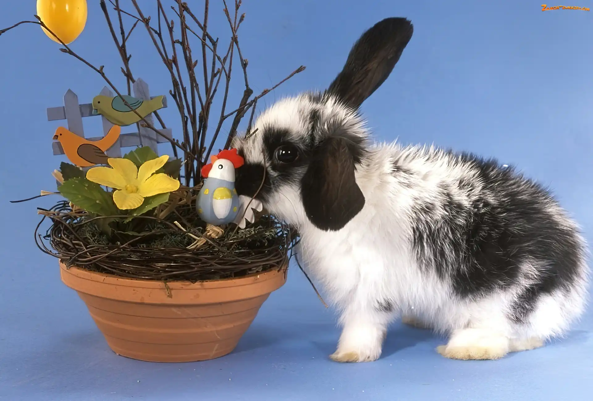 Zdjęcie: Kurczaczek, Króliczek, Szaro, Jajko, Wielkanocne, Biały, Palmy