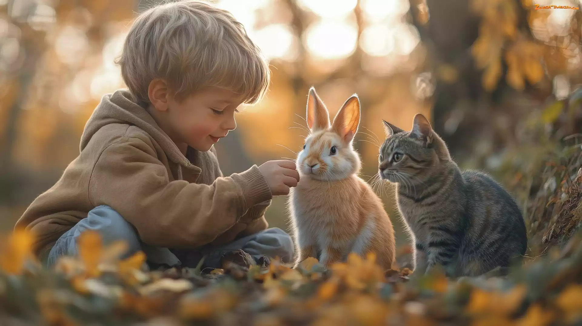 Zdjęcie: Dziecko, Chłopiec, Kot, Królik