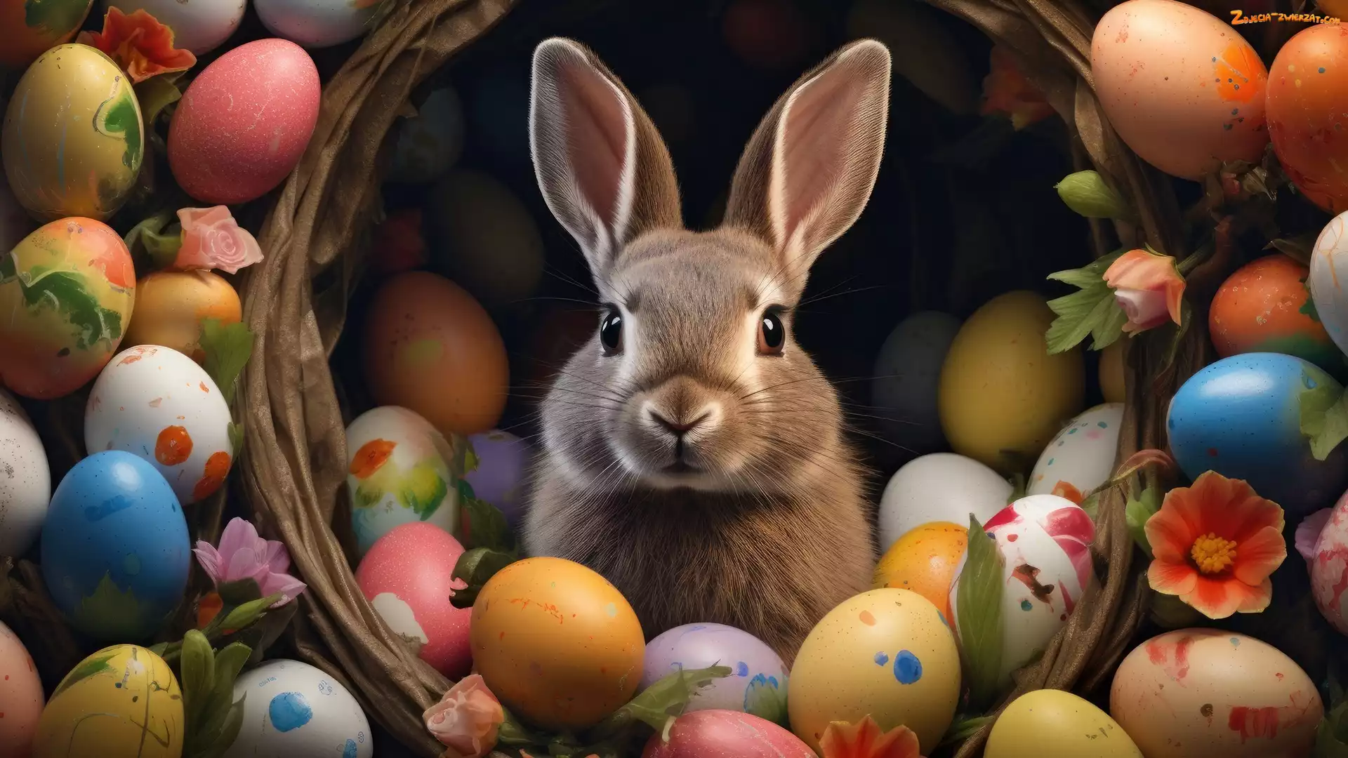 Kolorowe, Pisanki, Wielkanoc, Królik