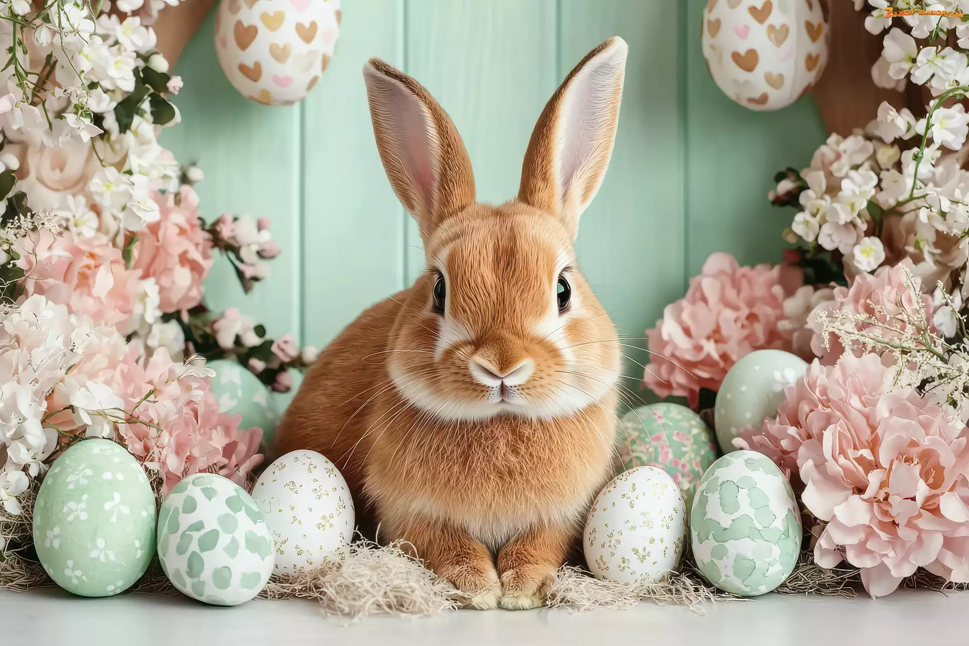 Pisanki, Królik, Kwiaty, Wielkanoc, Rudy