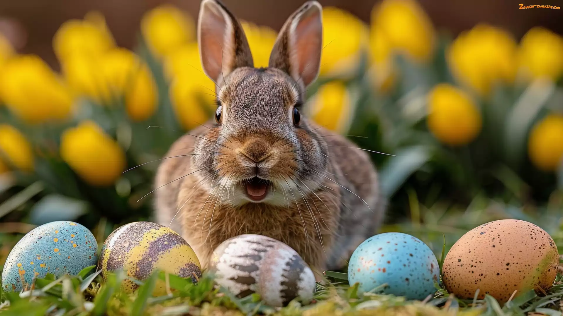 Zdjęcie: Grafika, Pisanki, Wielkanoc, Królik, Kwiaty, Rozmycie