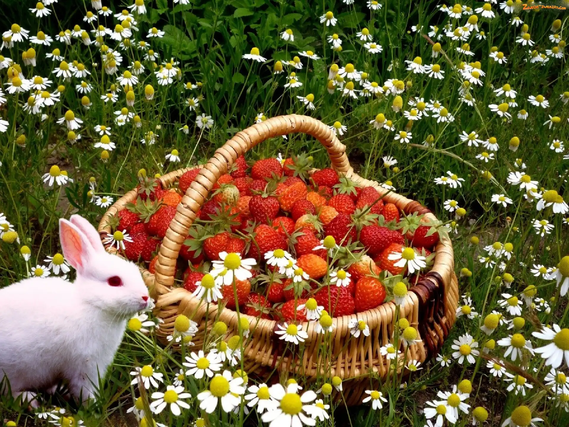 Zdjęcie: Rumianek pospolity, Królik, Truskawki
