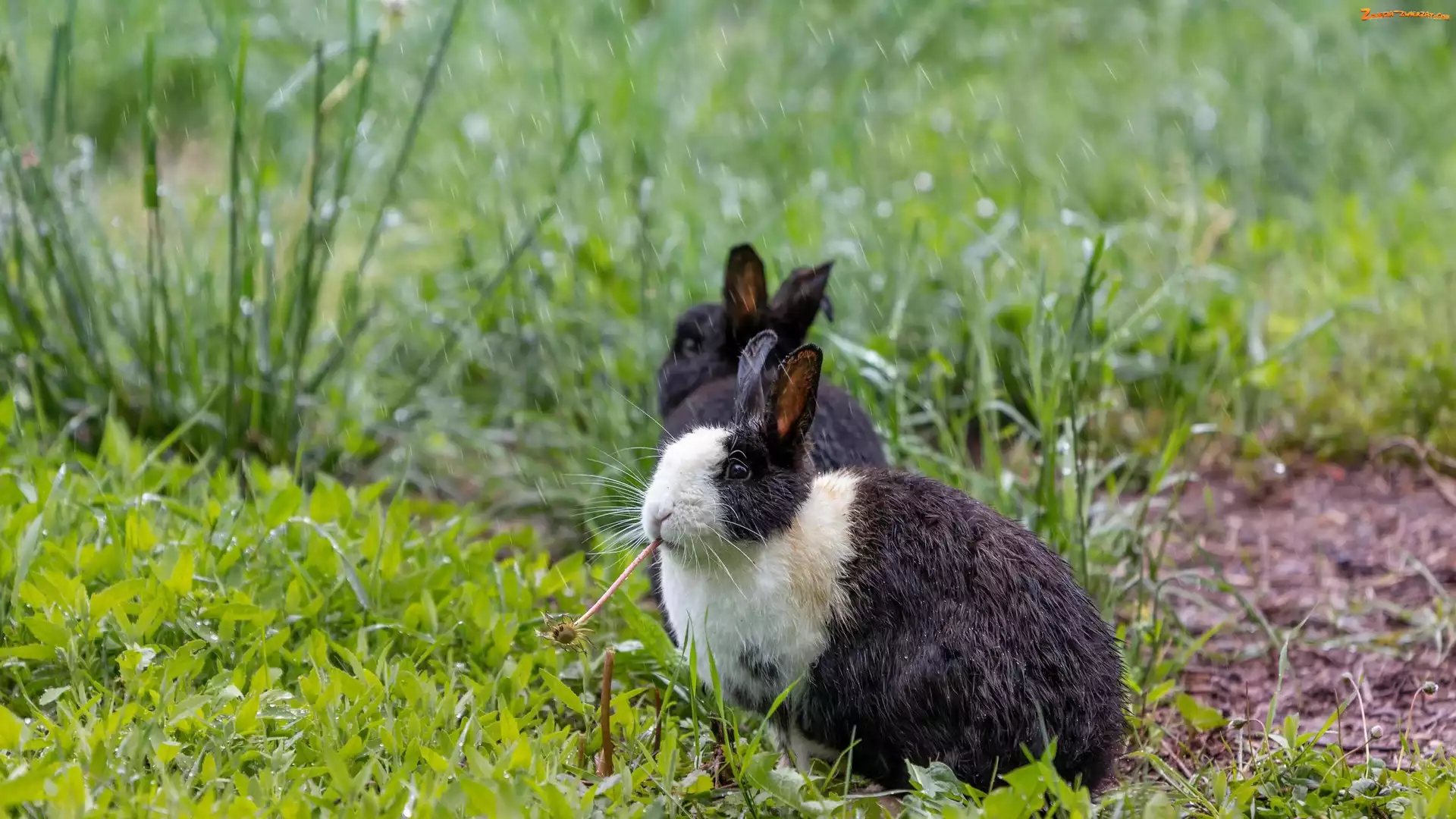 Zdjęcie: Króliki, Deszcz, Dwa, Trawa