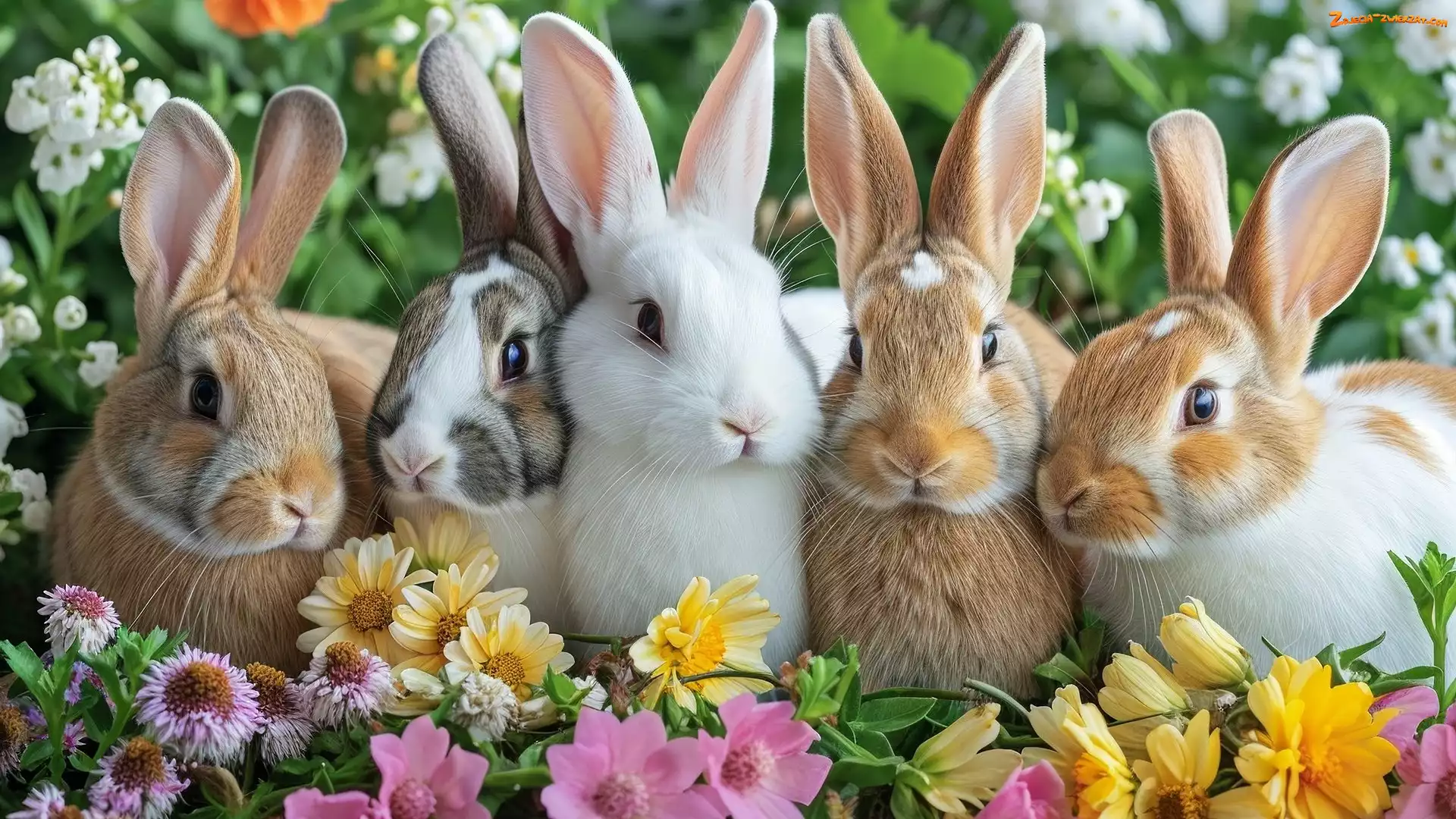 Zdjęcie: Kwiaty, Pięć, Grafika, Króliki, Królików, Kolorowe