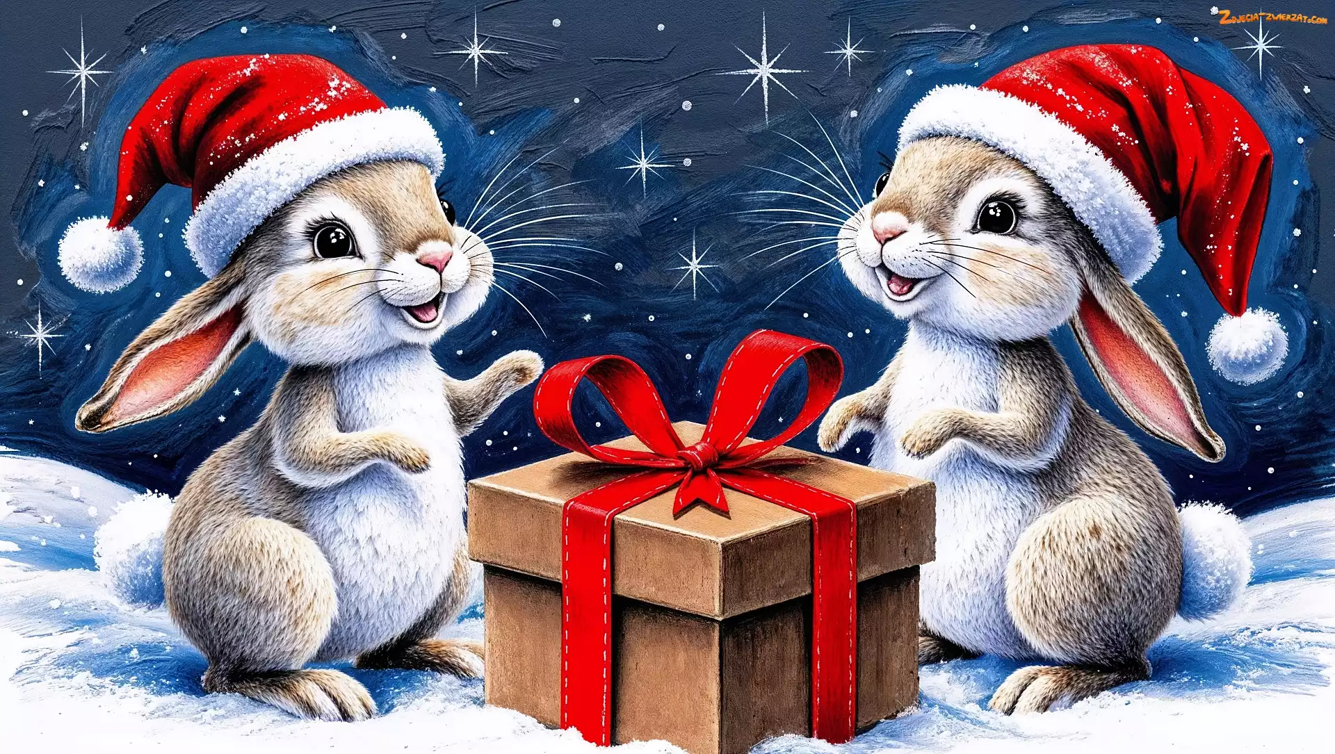 Zdjęcie: Grafika, Czapki, Dwa, Króliki, Mikołaja, Prezent
