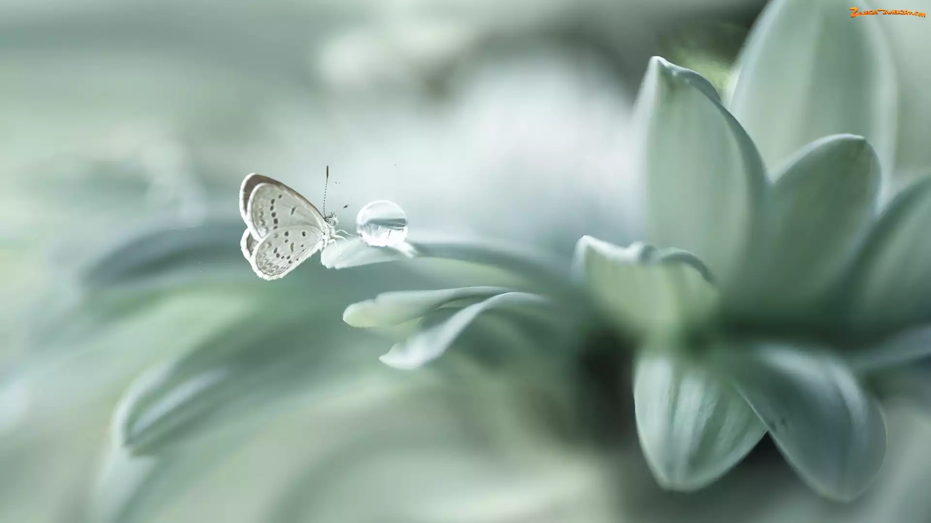 Zdjęcie: Kropla, Makro, Kwiat, Motyl modraszek
