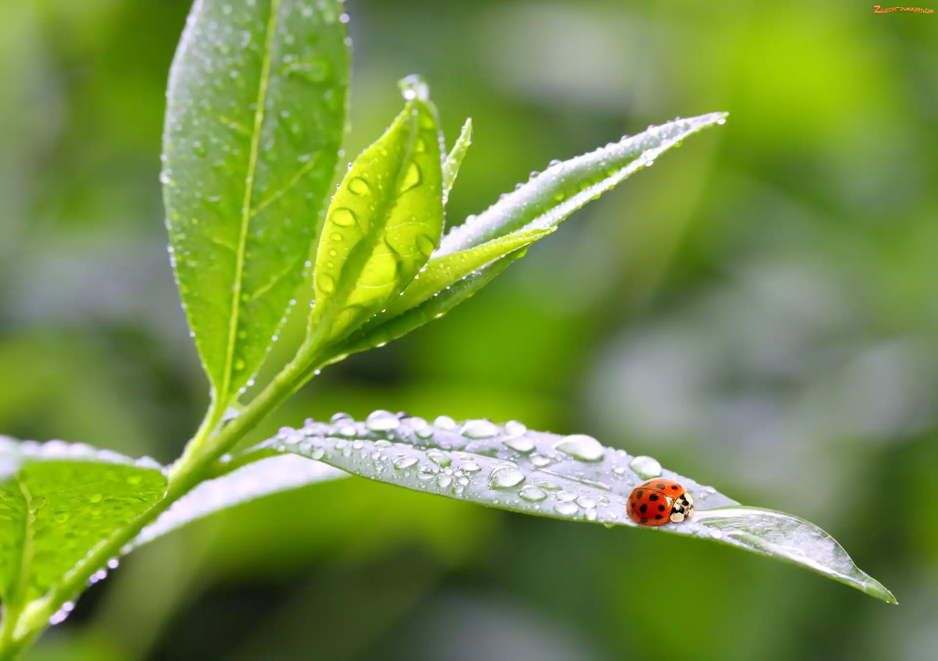 Zdjęcie: Krople, Liście, Biedronka, Wody