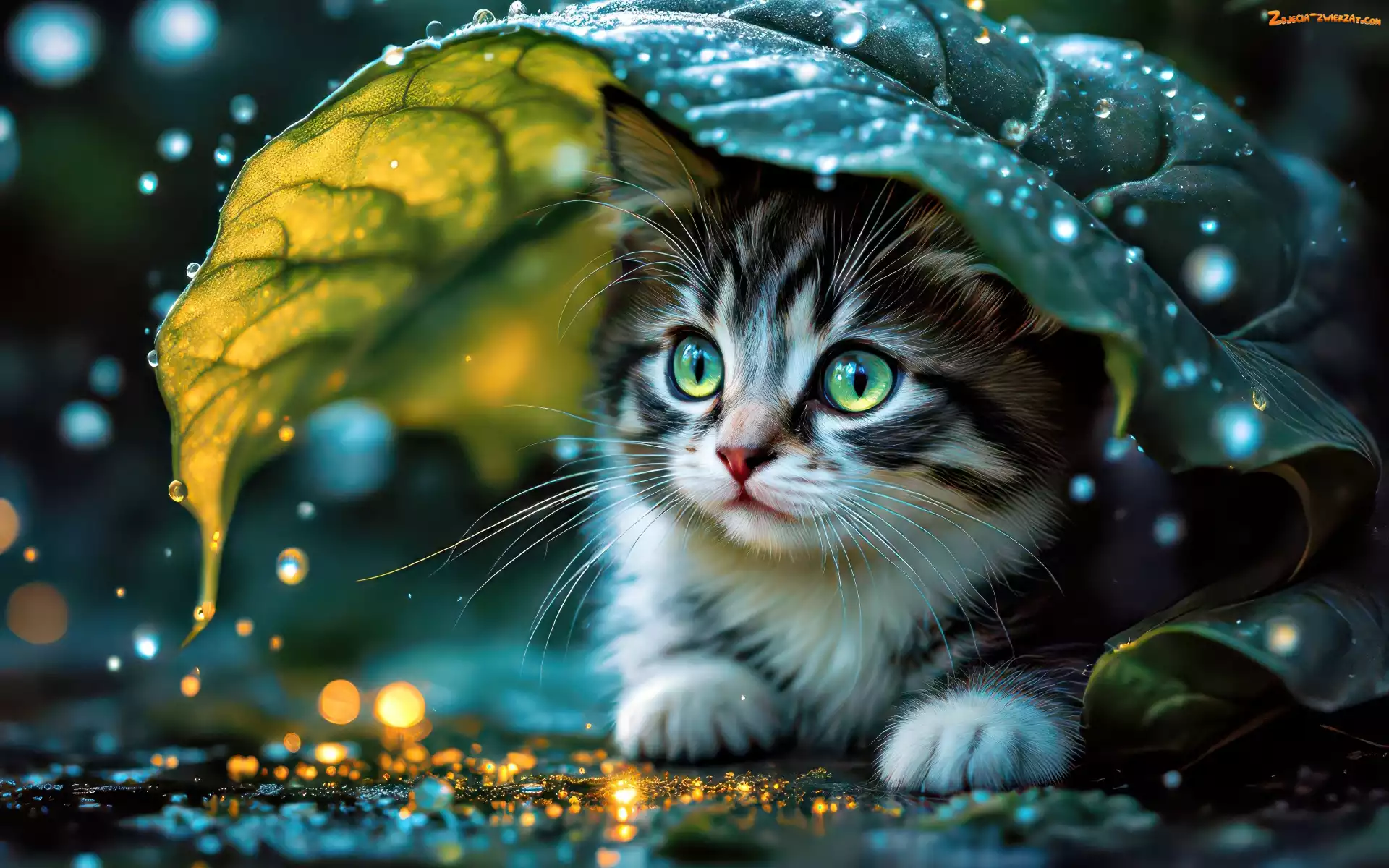 Zdjęcie: Kot, Liść, Deszcz, Krople