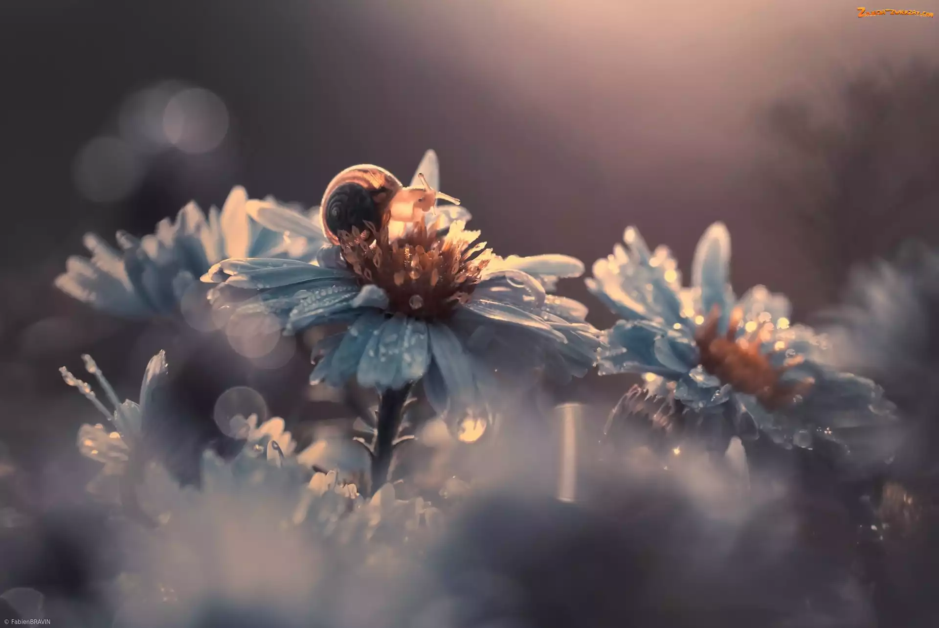 Zdjęcie: Krople, Ślimak, Kwiaty, Rosa