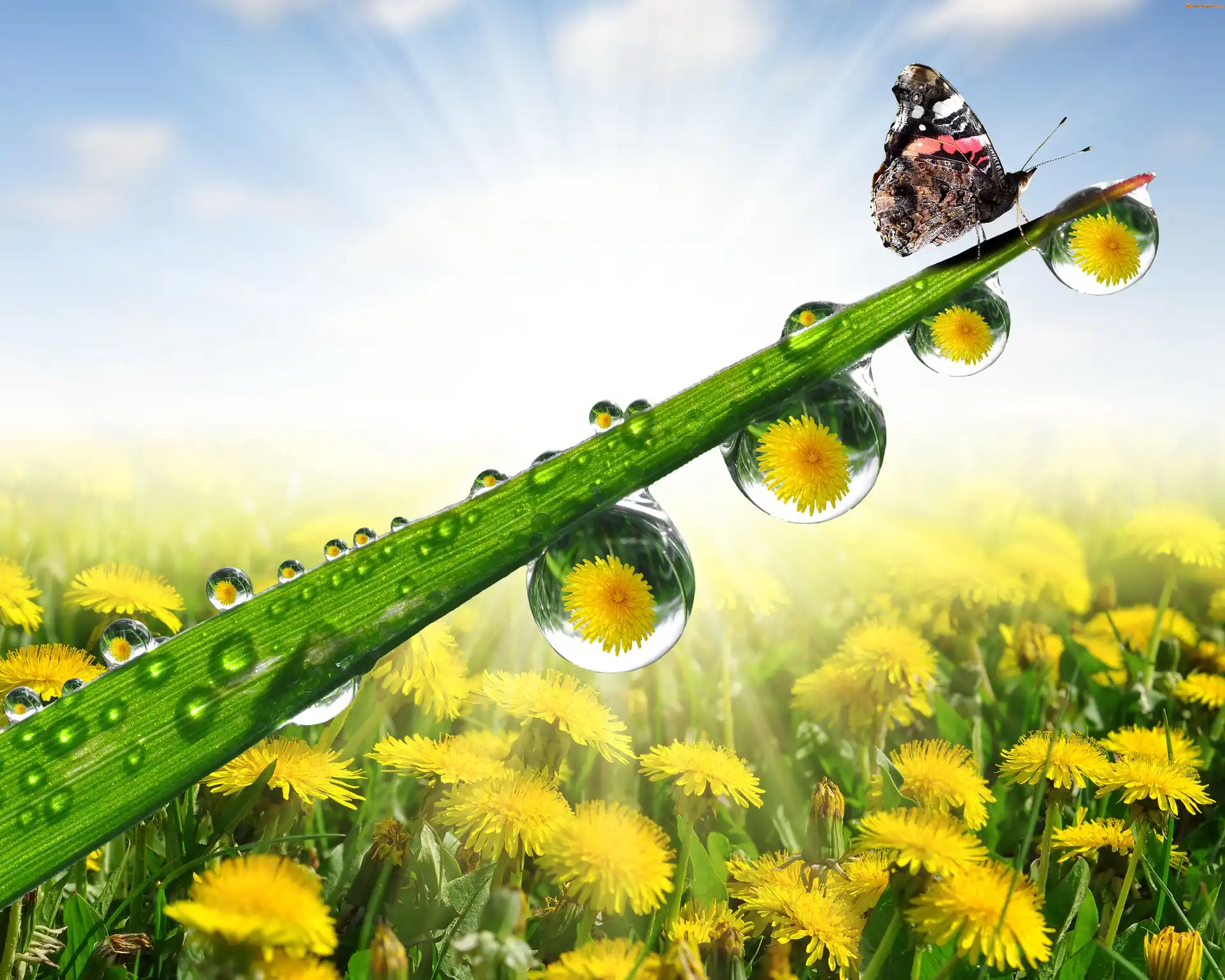 Zdjęcie: Krople, Motylek, Liść, Wody