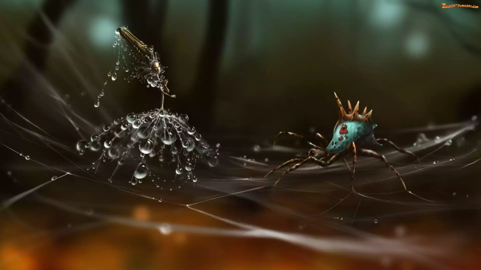Krople, Nasiona, Pajęczyna, Pająk, Mniszek