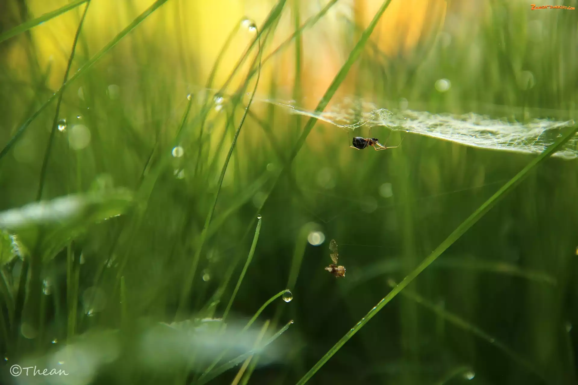 Zdjęcie: Krople, Pajęczyna, Trawa, Pająk