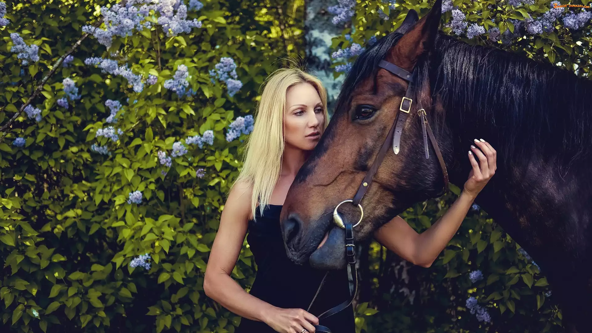 Zdjęcie: Krzew bzu, Kobieta, Koń
