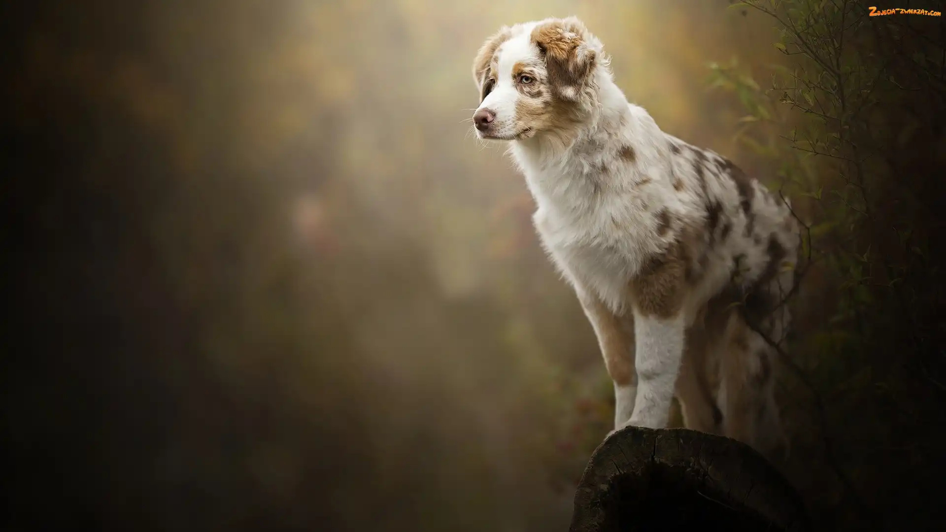 Zdjęcie: Krzew, Pień, Owczarek australijski, Szczeniak, Wydrążony