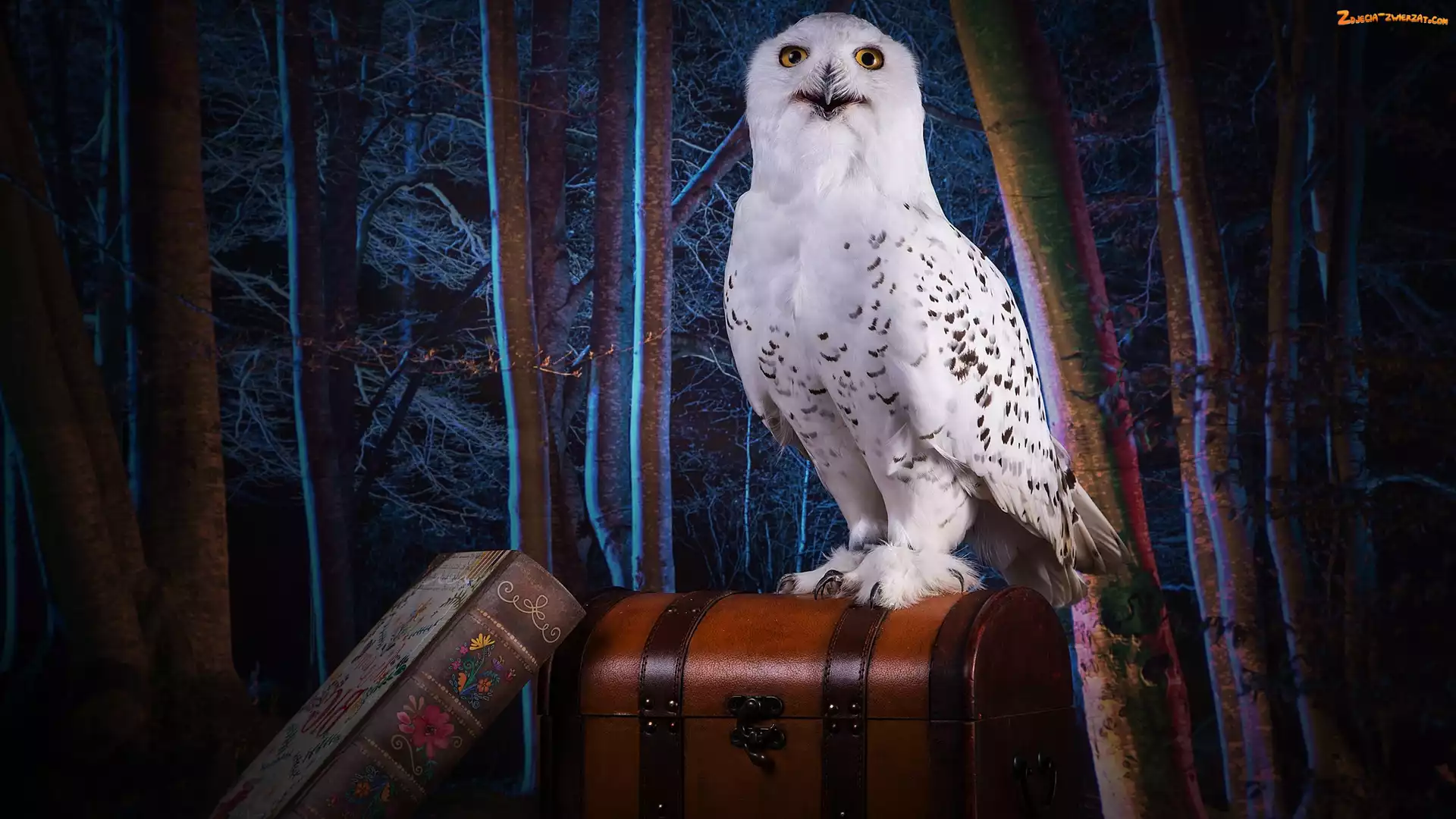 Zdjęcie: Książka, Drzewa, Sowa śnieżna, Kufer