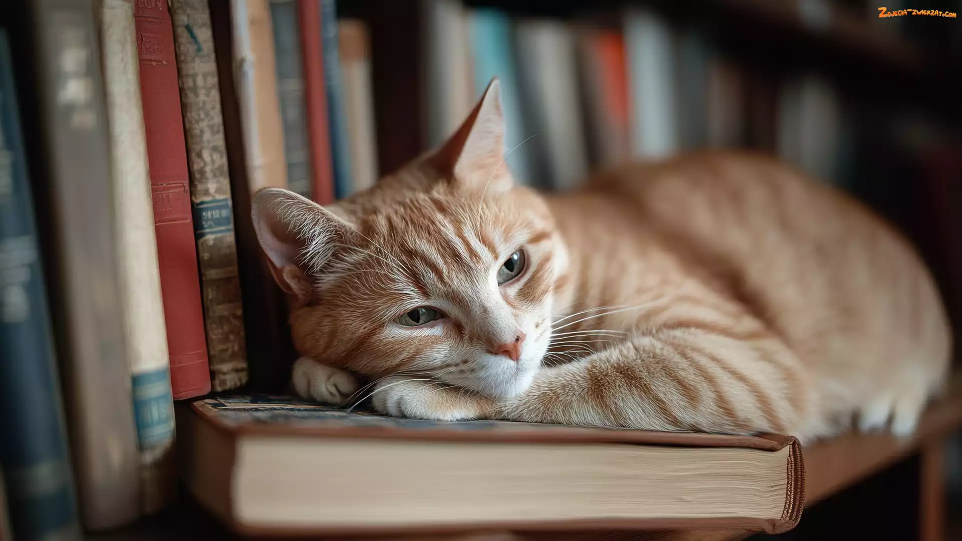 Zdjęcie: Książki, Leżący, Kot