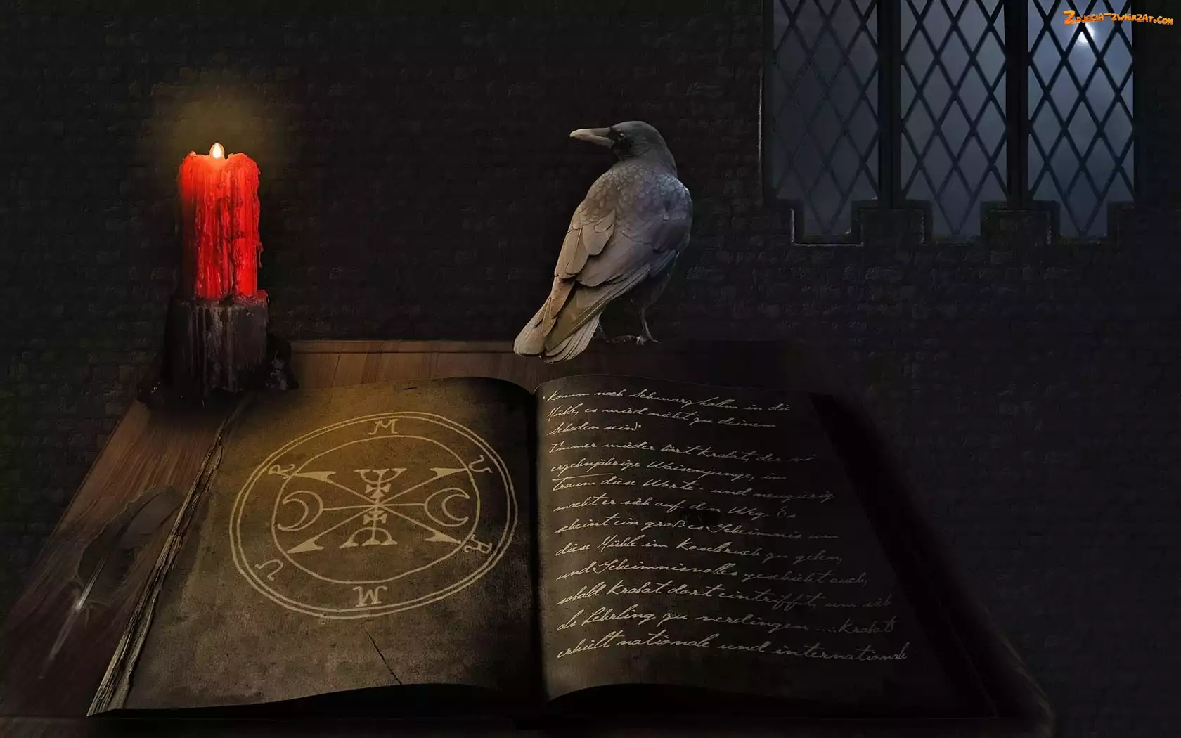 Zdjęcie: Kruk, Świeczka, Księga, Czerwona