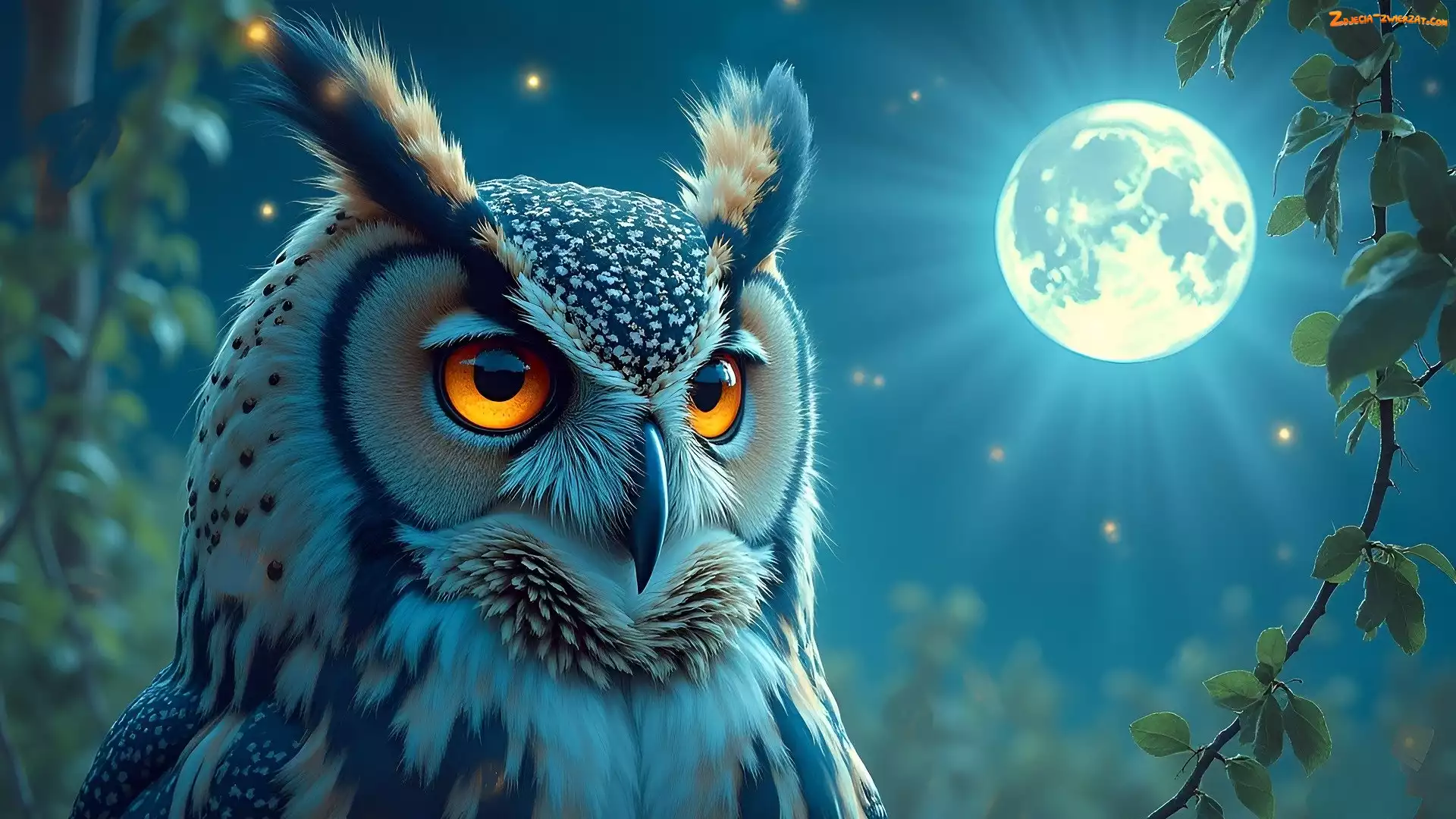 Zdjęcie: Noc, Sowa, Gałęzie, Księżyc