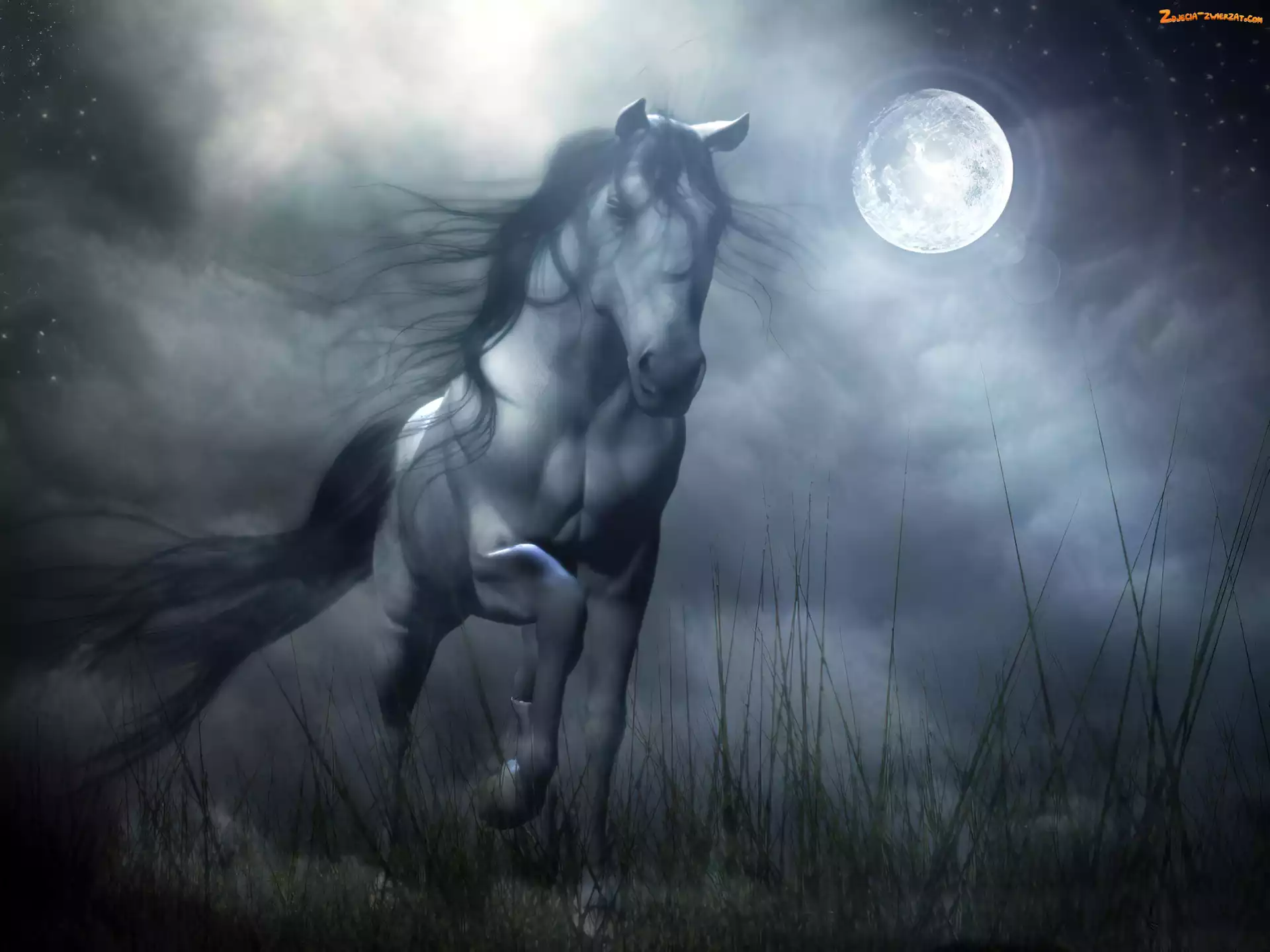 Zdjęcie: Księżyc, Galop, Noc, Koń