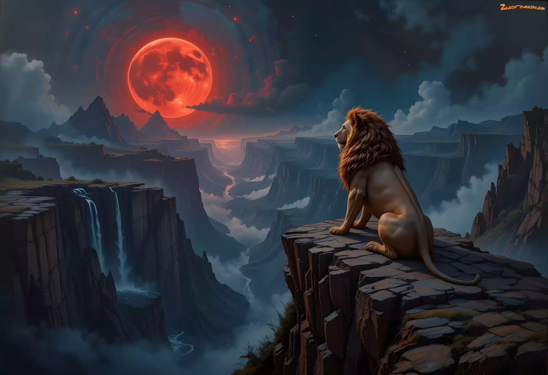 Kanion, Księżyc, Wodospady, Lew, Skały