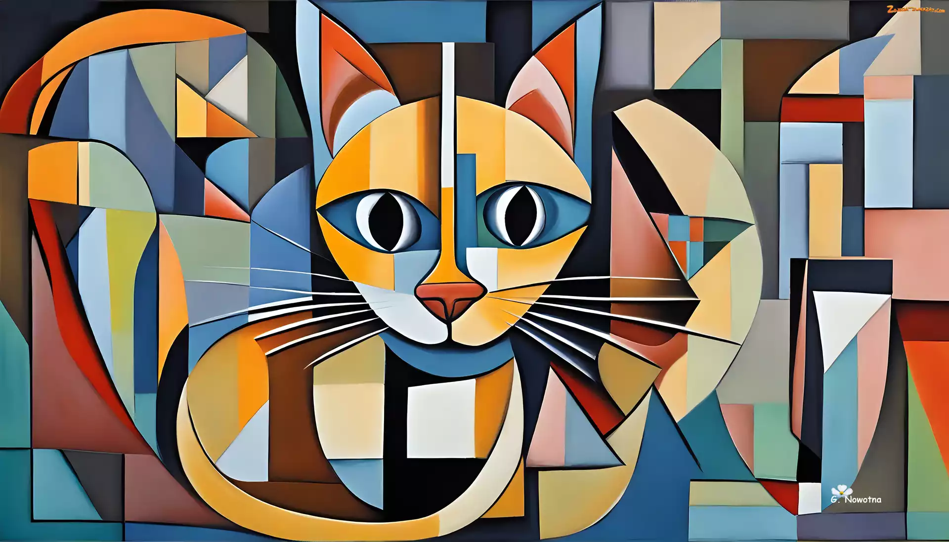 Zdjęcie: Kot, Obraz, Grafika, Kubizm