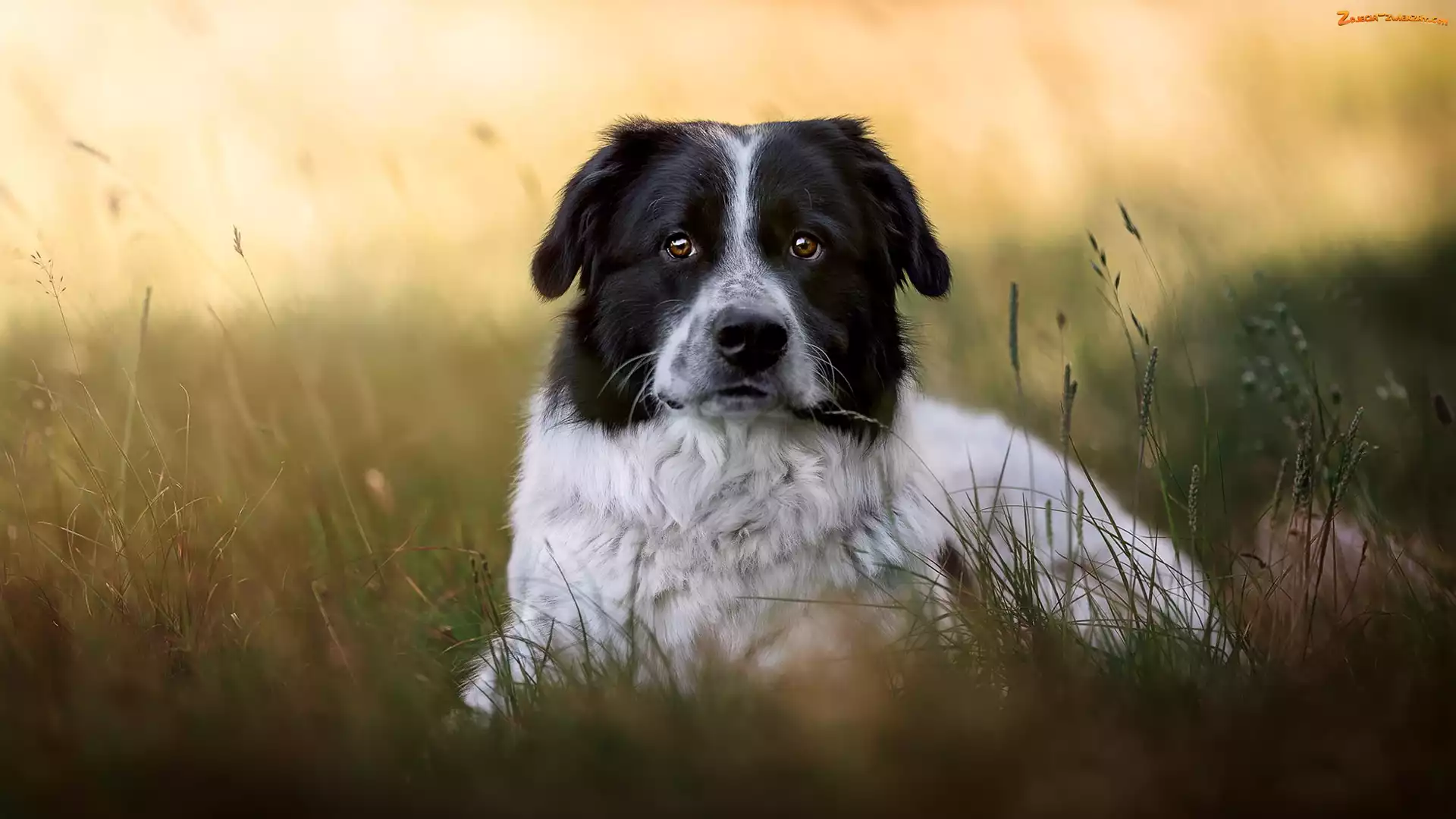 Kundelek, Trawa, Pies, Czarno-biały