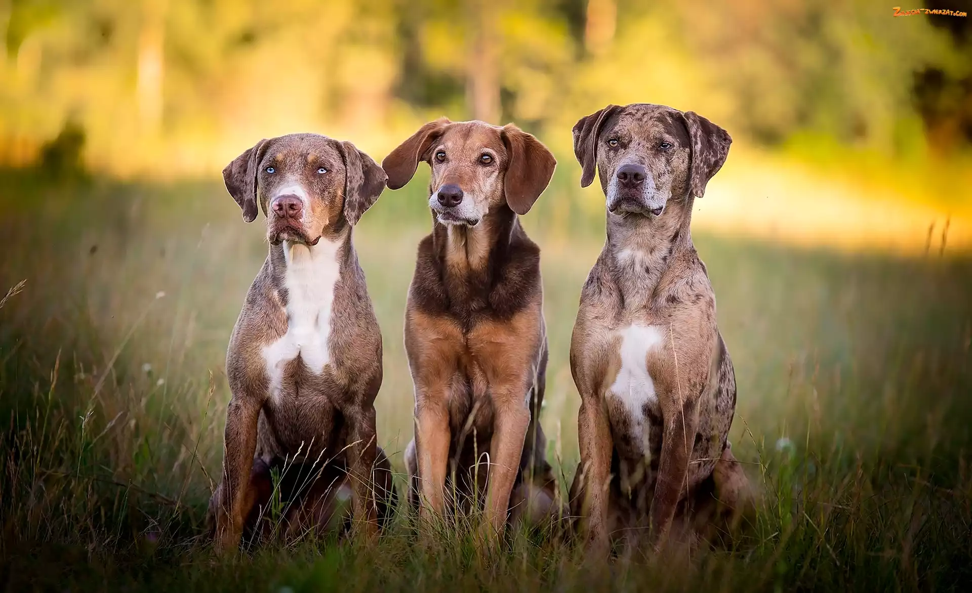 Zdjęcie: Trawa, Kundelek, Psy, Trzy, Catahoula leopard dog