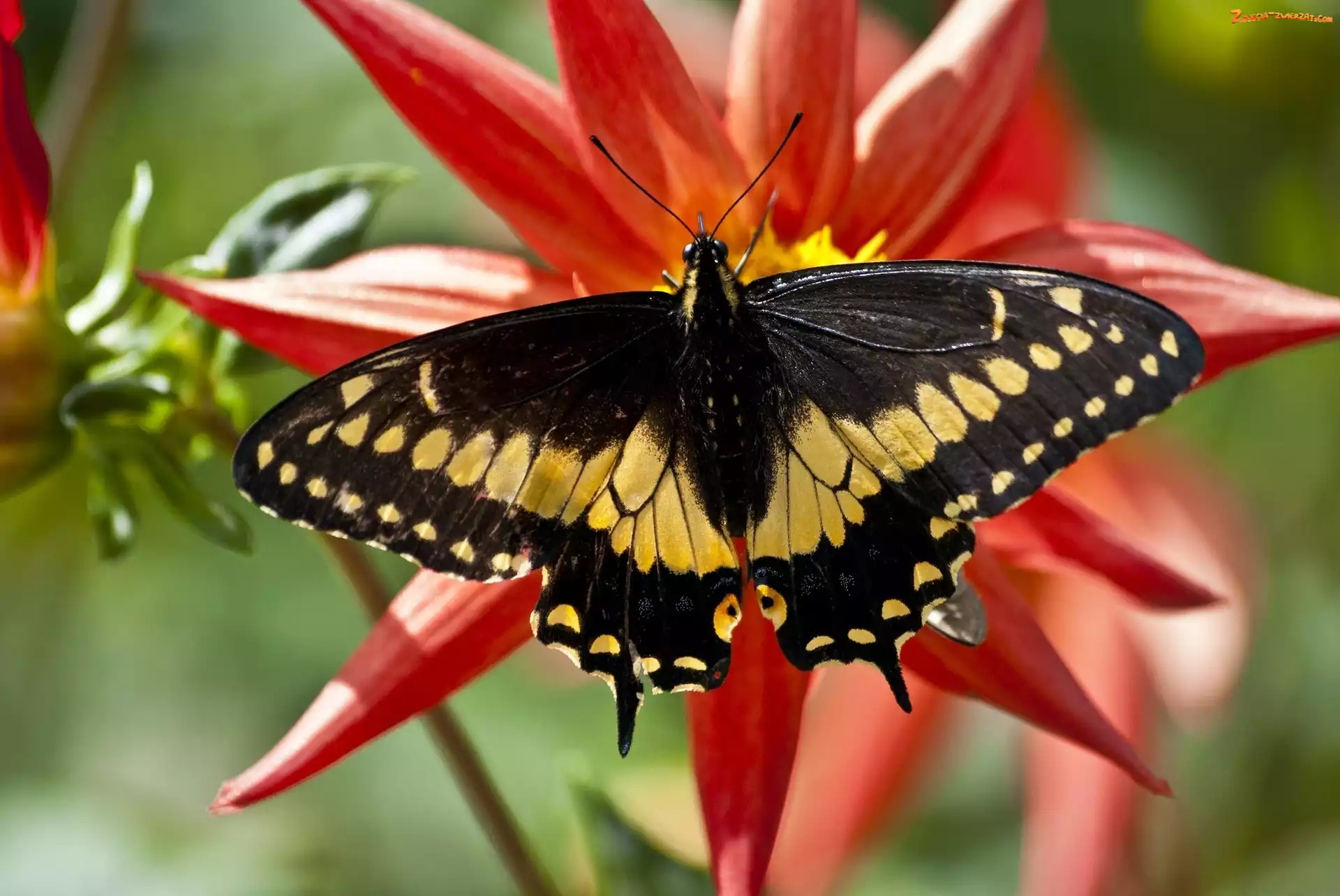 Zdjęcie: Kwiat, Czerwony, Żółty, Czarno, Motyl