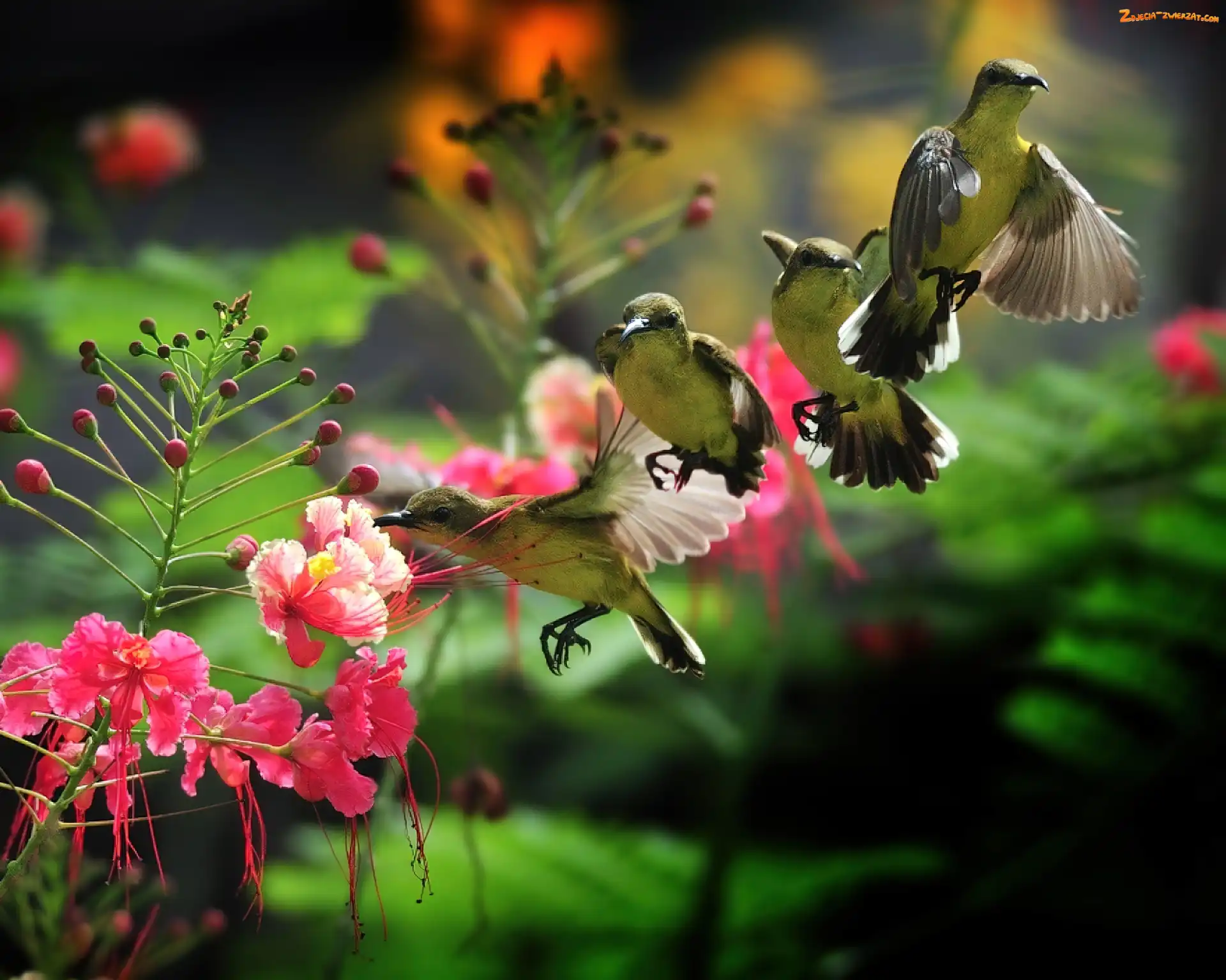 Zdjęcie: Kolibry, Kwiat, Cztery