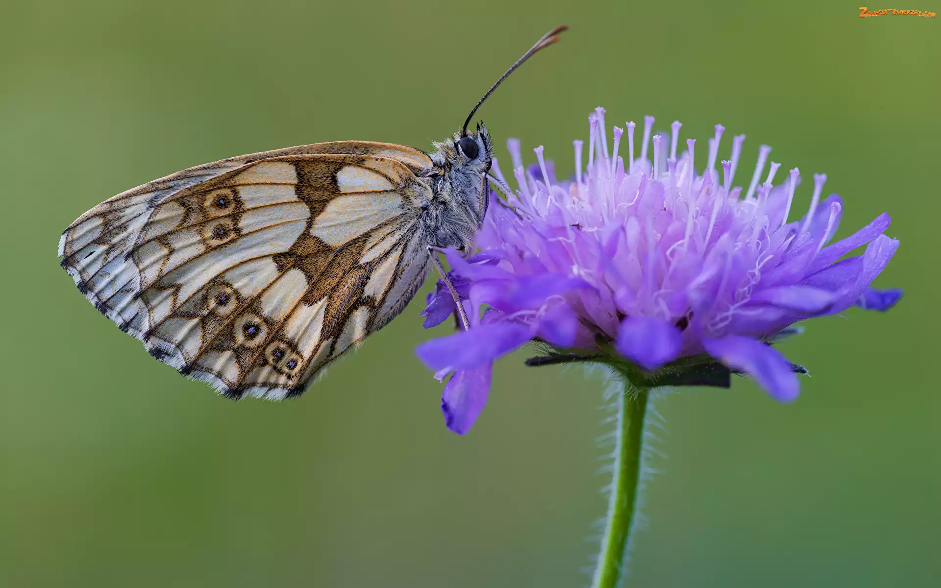 Fioletowy, Polowiec szachownica, Kwiat, Owad, Motyl