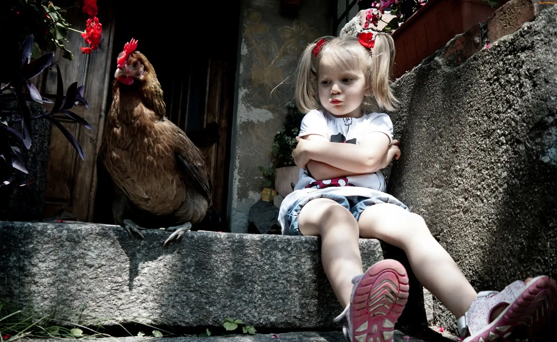 Zdjęcie: Kwiatek, Kura, Dziecko, Obrażone, Dziewczynka