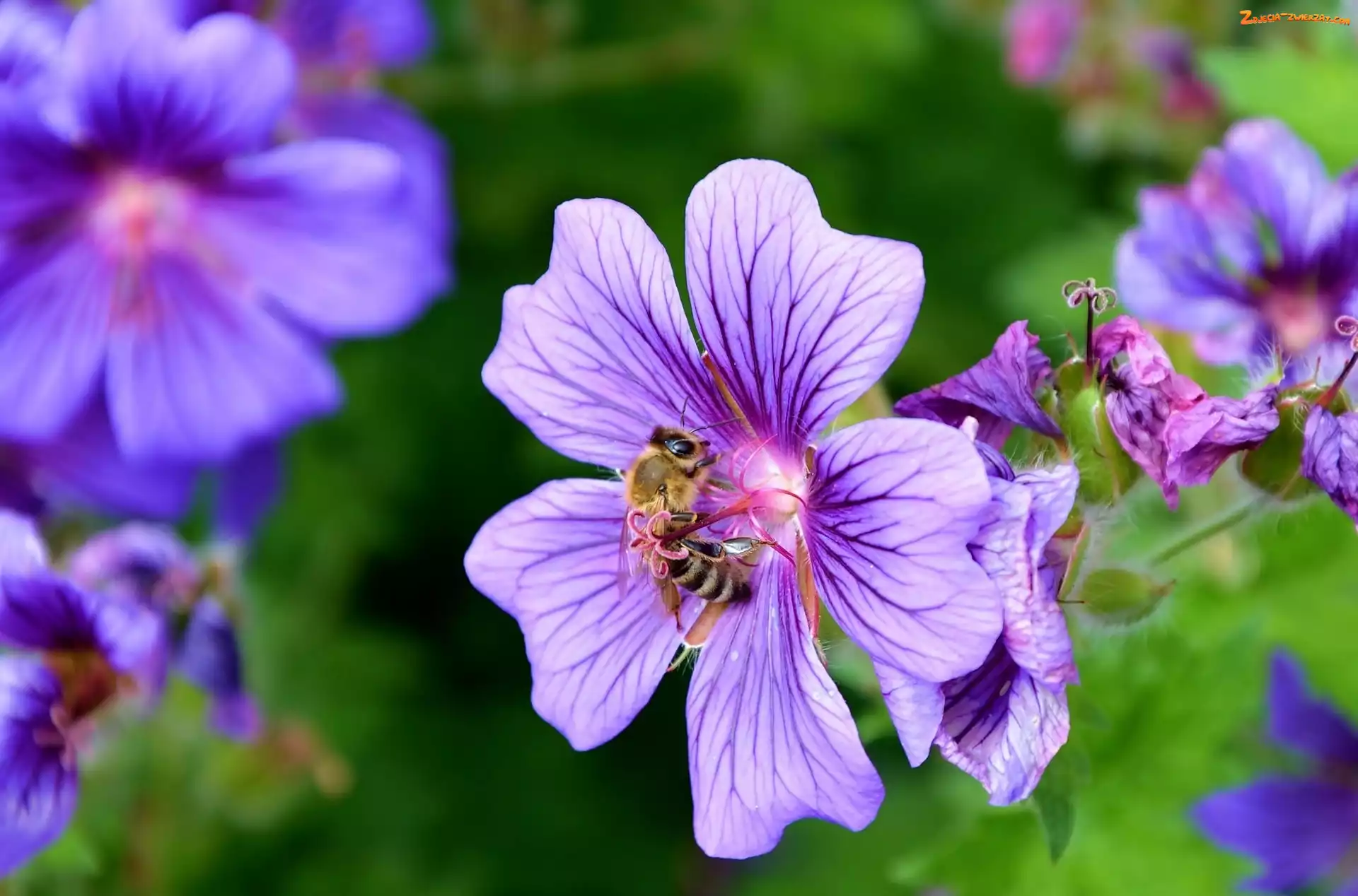 Kwiatki, Bodziszek, Fioletowe, Pszczoła