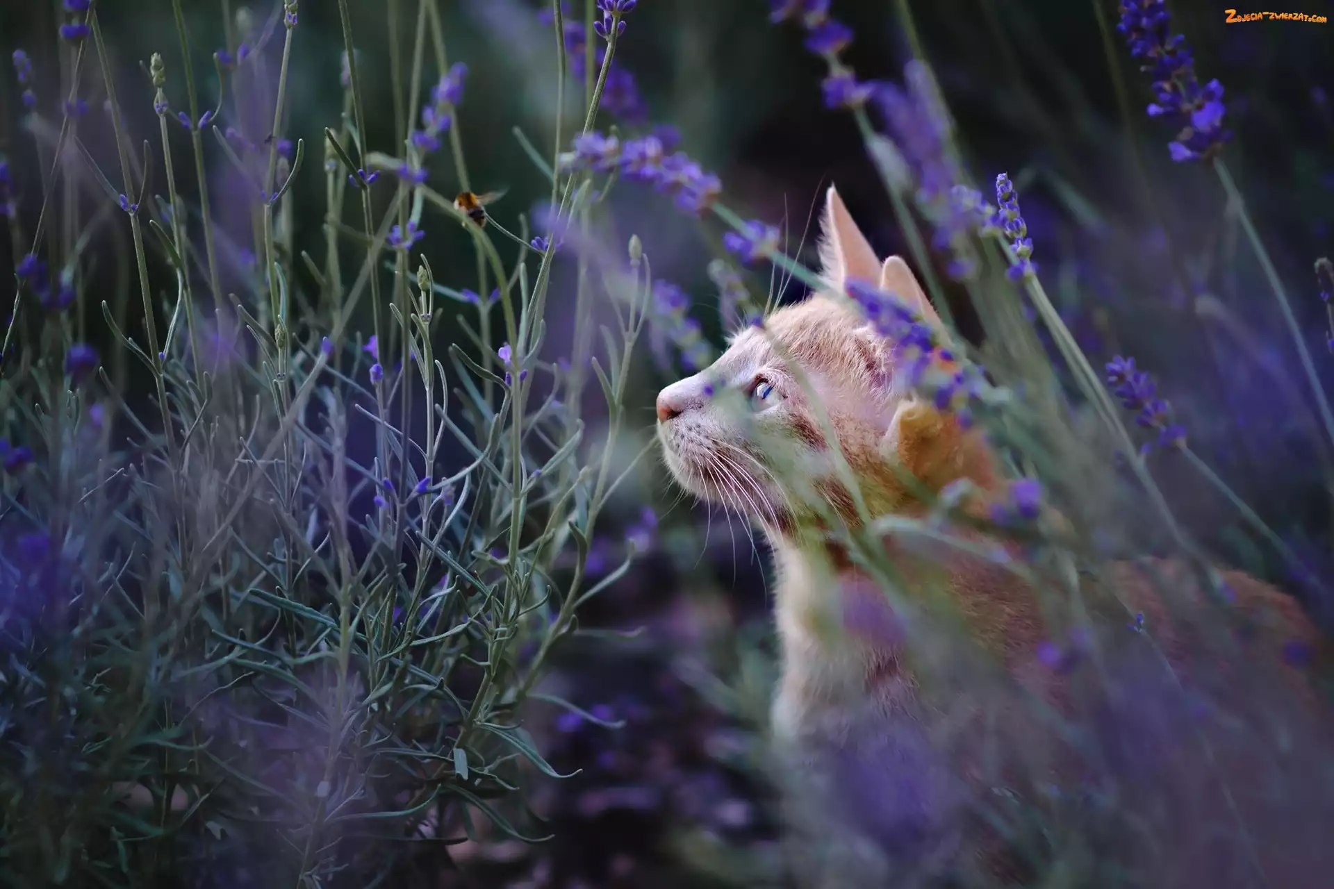 Zdjęcie: Kwiatki, Niebieskie, Pszczoła, Kot, Rośliny